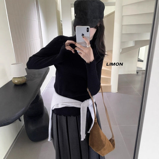 【LDF006】檸檬家親膚絨木耳邊半高領長袖針織衫251117