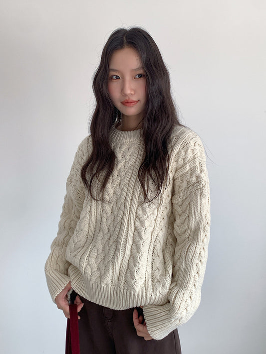 【LD11003】實拍冬季加厚麻花長袖圓領毛衣251110