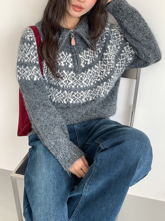 【LD11004】實拍兔絨毛混紡費爾島針織毛衣半拉鏈大翻領251110