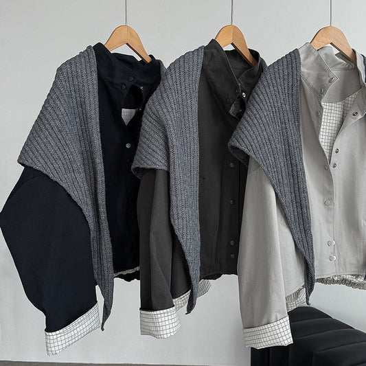 【cim2808】實拍小眾設計款立領蝙蝠袖風衣外套+針織披肩250925
