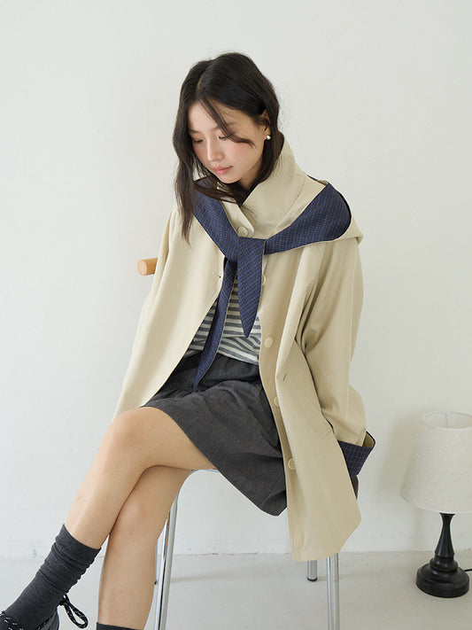 【LD3215】實拍韓國立領休閒寬鬆風衣外套+可拆卸連帽250929