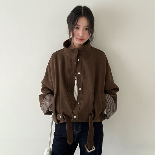【LD3248】實拍秋冬個性立領復古毛呢短外套251006