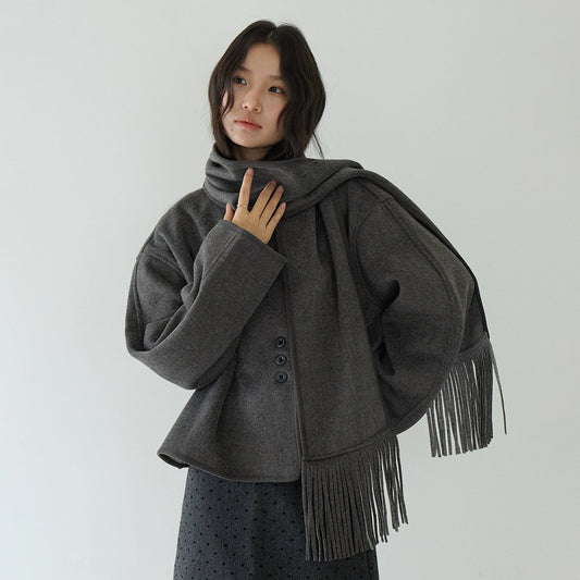 【LD3263】實拍冬季高級設計師款雙面呢外套+圍脖毛呢251012