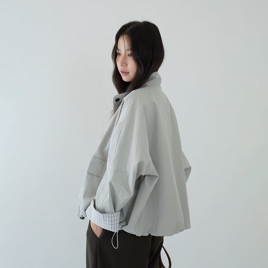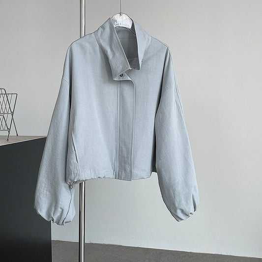【cim2796】實拍立領工裝抽繩寬鬆短風衣外套250904