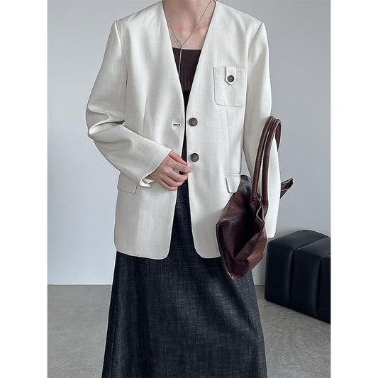 【L8226】實拍檸檬棉麻高級感氣質寬鬆西裝外套250915