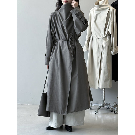 【Y71200】實拍初秋個性立領收腰抽繩風衣外套250911