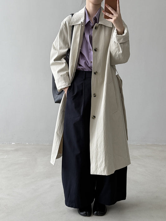 【H5434】實拍初秋復古落肩長版風衣外套250916