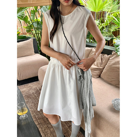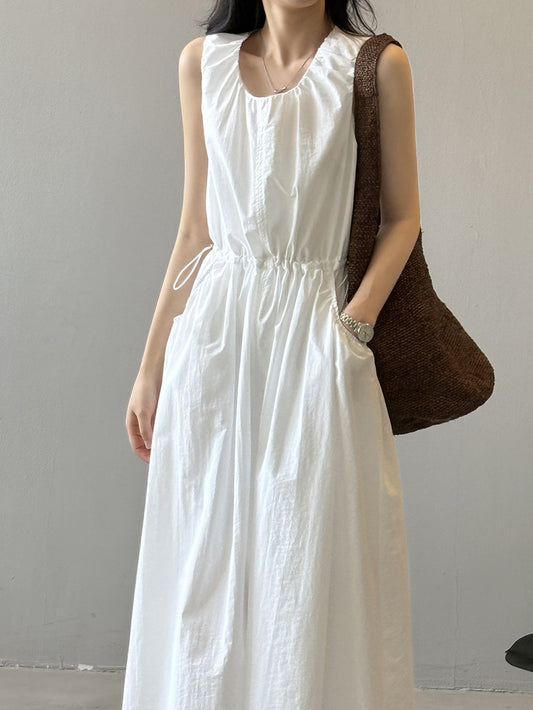 【Y82360】實拍夏季韓系氣質|抽繩收腰圓領洋裝250501