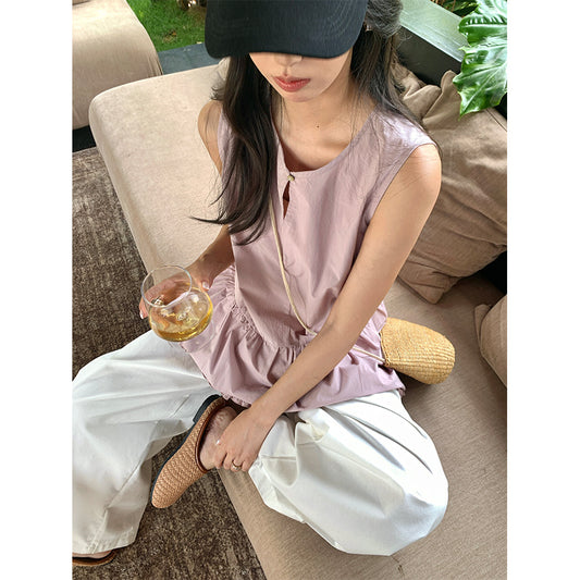 【F60357】韓國夏季法式微甜芭蕾抽繩收腰上衣短洋250408