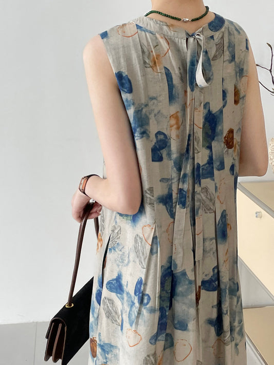 【cim2572】實拍夏季復古簡約高單水墨印花洋裝250508