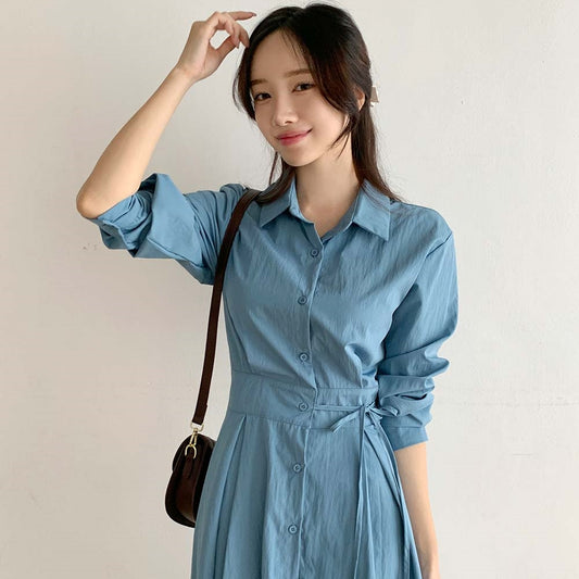 【F60192】韓版春季簡約氣質襯衫襯衫洋裝250225