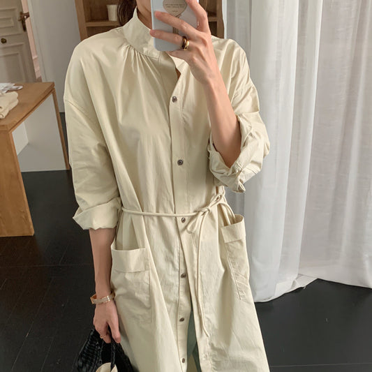 【F60108】實拍早春小眾復古立領棉質襯衫式洋裝250212