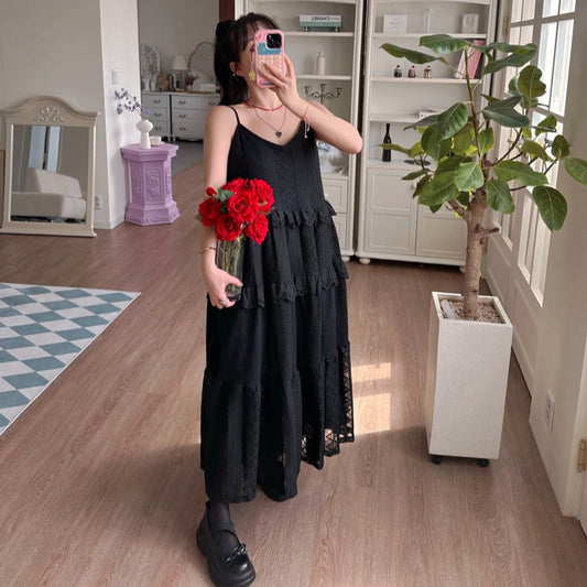 【F60182】韓國東大門蕾絲鏤空拼接蕾絲吊帶洋裝250225