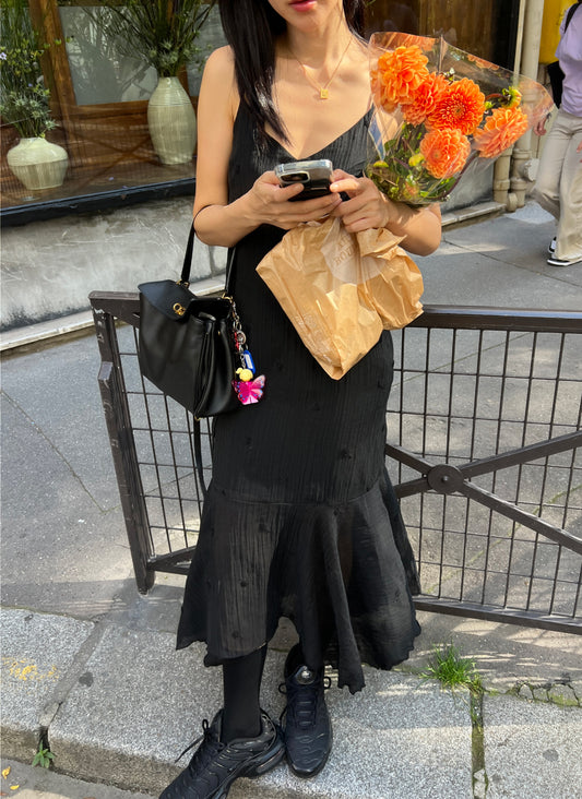 【F60181】春夏氣質立體點不規則雪紡洋裝250225