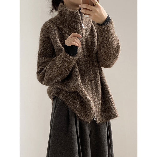 【H559】實拍個性雙拉鍊高領針織外套251021