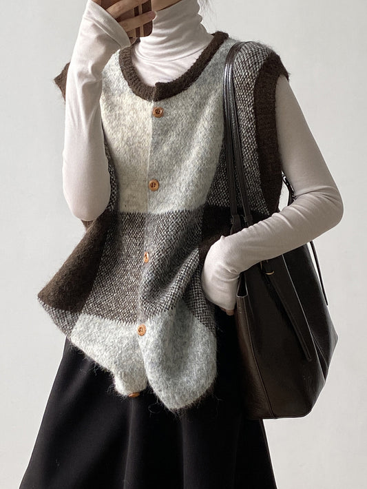 【LD3271】 實拍復古彩紗愛心扣圓領毛衣開衫251020