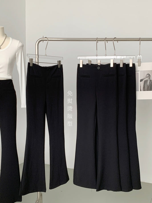 【F60172】實拍S~XL早春超顯瘦高腰黑色微喇叭褲/加絨款(微彈,後開隱形拉鍊)250218