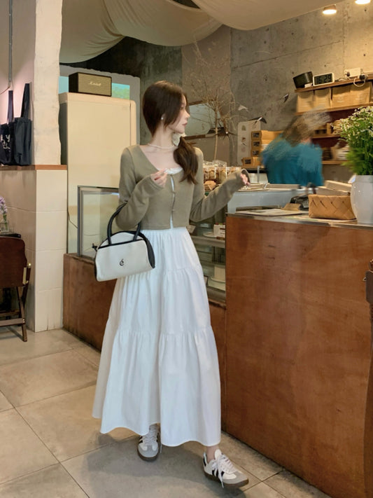 【F60148】實拍春夏甜美長袖針織開衫+針織小背心250218