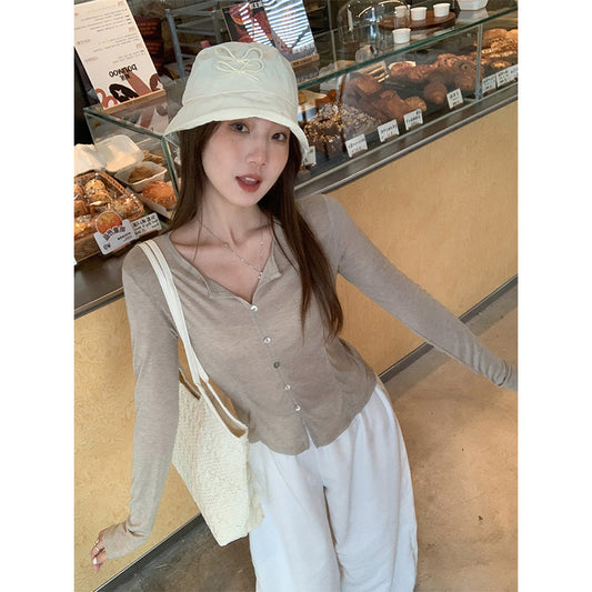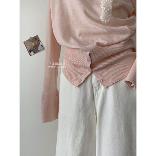【F60146】實拍春季基礎款紐扣可開針織衫250218