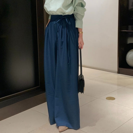 【F60155】韓國復古氣質高級感高腰側邊繫帶垂感寬鬆闊腿褲250218