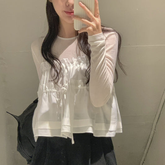 【F60168】實拍韓系氣質荷葉打摺喇叭袖襯衫250218
