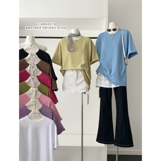 【F60177】實拍情侶可穿9色寬鬆純色短袖T恤250218