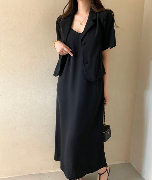 【F032263】韓國夏季簡約小眾外套上衣+吊帶洋裝250311