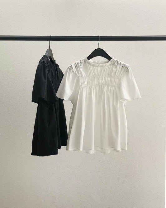 【F032289】韓國東大門夏季甜美立領褶皺娃娃襯衫250311