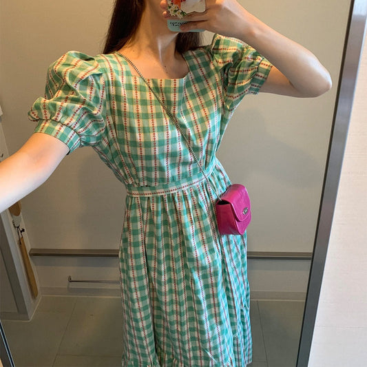 【F032296】韓國東大門少女清新氣質寬鬆荷葉短洋裝250311