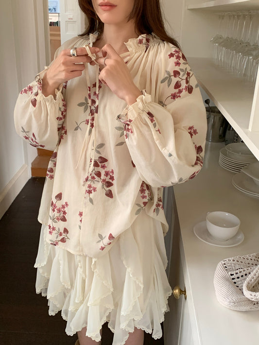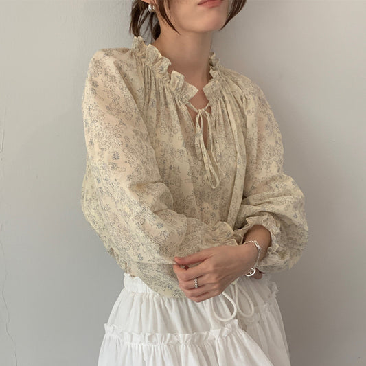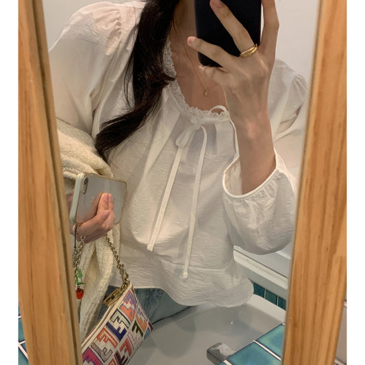 【F032281】實拍法式浪漫寬鬆繫帶襯衫250311