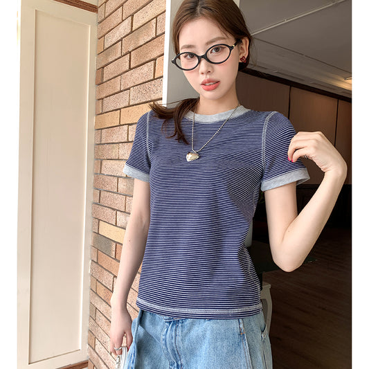 【F032279】實拍S~XL夏季條紋舒適圓領短袖T恤250311