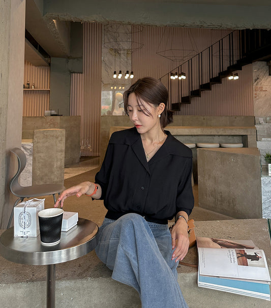 【F032262】韓國法式復古西裝領氣質襯衫250311