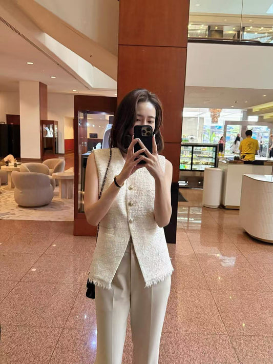 【F032277】韓版輕熟小香粗花呢修身背心250311