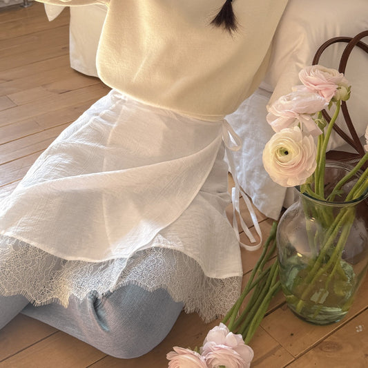 【F032295】韓國温柔氣質蕾絲繫帶屁簾裙250311