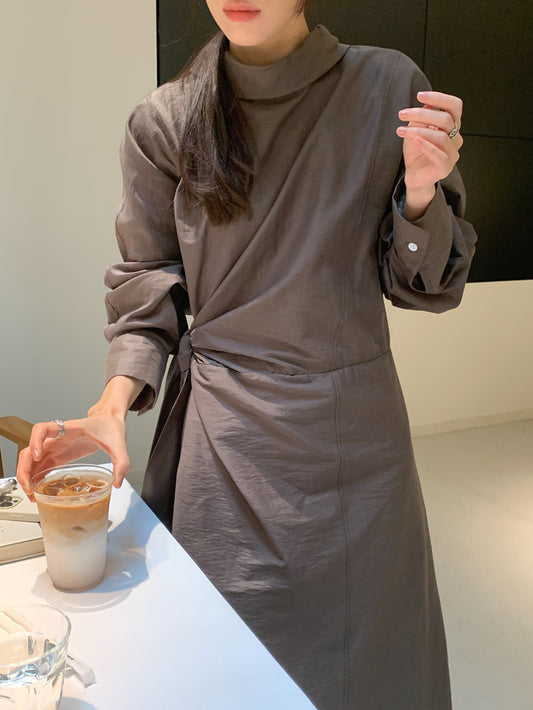 【F60108】實拍早春小眾復古立領棉質襯衫式洋裝250212