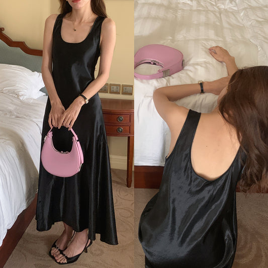 【F60320】實拍法式優雅簡約緞面絲滑洋裝 3色250408
