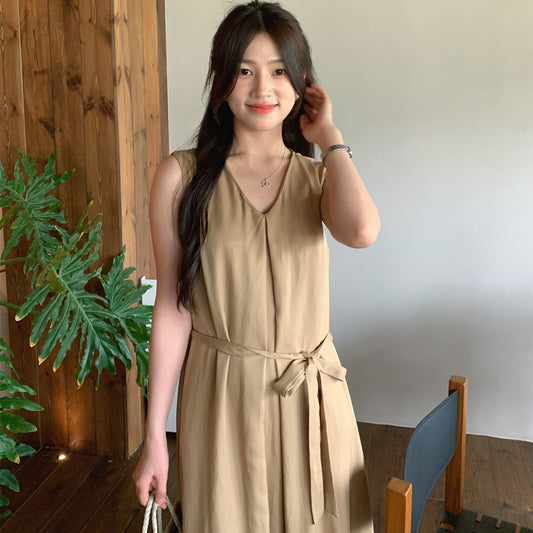 【F60318】實拍温柔甜美寬鬆繫帶背心洋裝250408