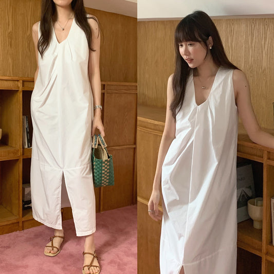 【F60322】實拍日系簡約前後兩穿開叉洋裝250408