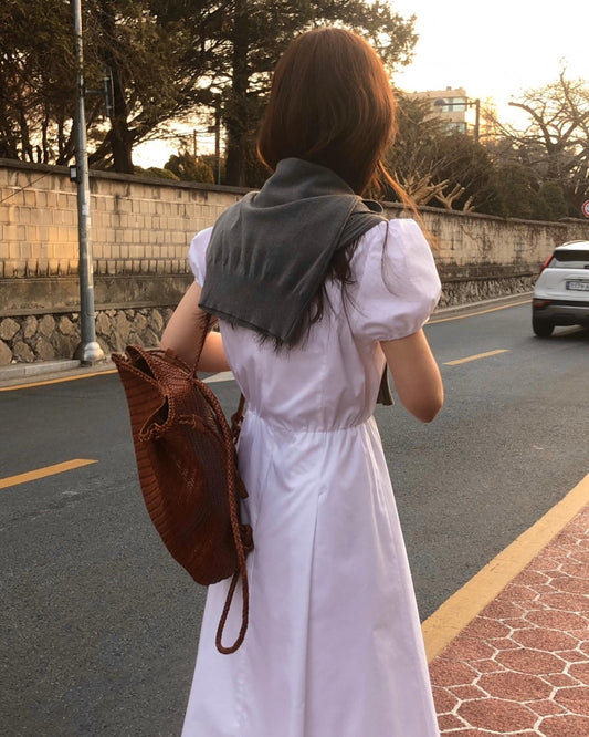 【F60389】實拍夏季溫柔氣質洋裝|法式天絲布料抓腰排扣洋裝250512