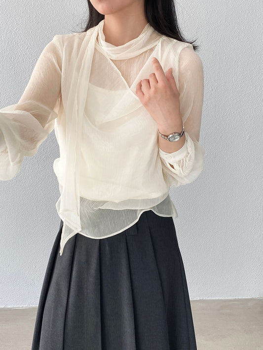 【cimz1768】實拍早春浪漫歐根紗飄帶假兩件襯衫260122