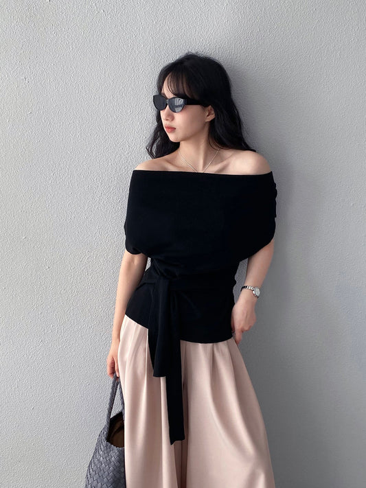 【cimz6030】實拍早春2穿不對稱繫帶6%羊毛短袖針織衫260122