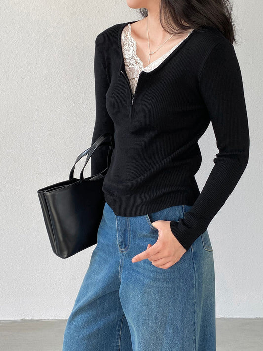 【cimzQ1256】實拍蕾絲舒適V領針織衫260122
