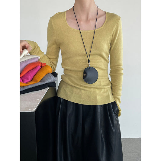 【cimYL938】實拍氣質混羊毛方領針織衫(羊毛6%)250925