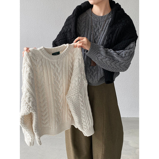 【cimz1398】實拍復古加厚保暖棒針麻花針織毛衣(棉羊毛17)251120