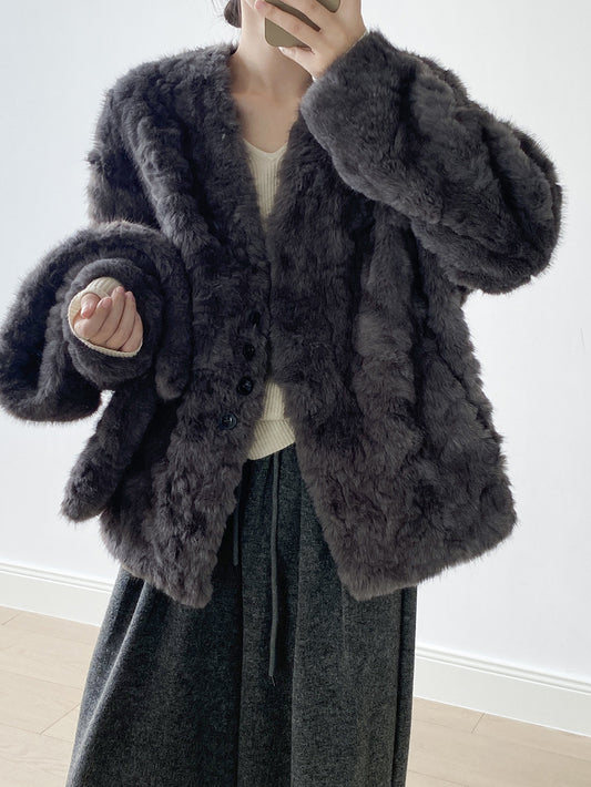 【YH707】實拍高質感毛茸茸仿皮毛保暖一体毛绒外套+圍巾251113