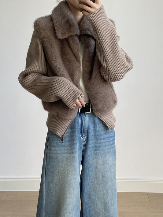 【YH8309】實拍高質感時髦仿皮草拼接針織假2件毛毛外套251113