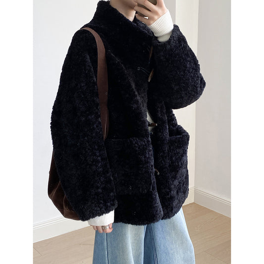 【Y7097】實拍冬季慵懒可愛牛角扣羊羔毛厚外套251113