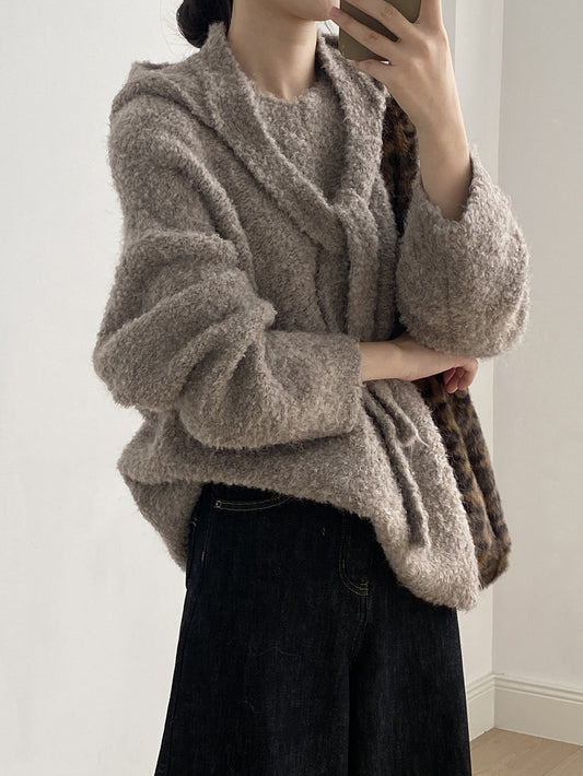 【YK259】實拍冬季慵懒奶呼呼針織毛衣+可拆卸披肩帽子(羊毛12%)251113