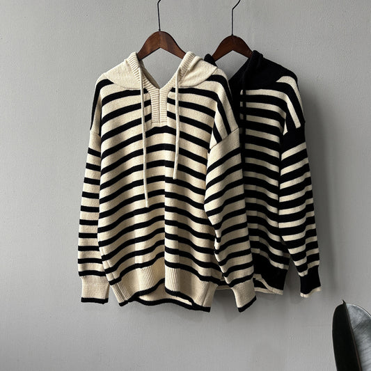 【Y899】實拍冬季條紋針織連帽毛衣251106