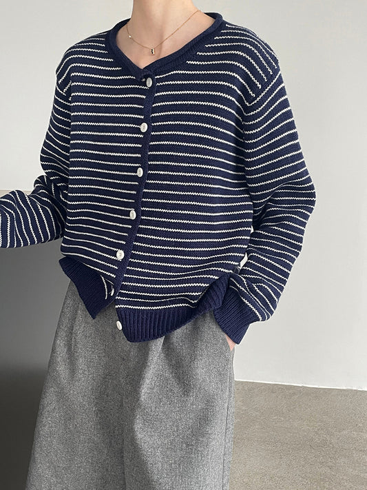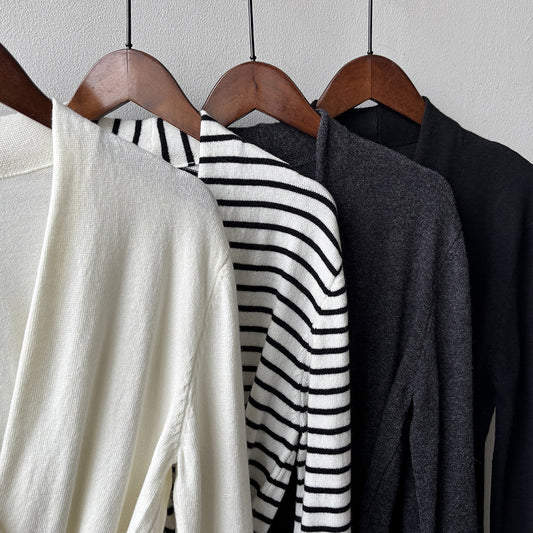 【cim779】實拍羊毛混紡休閒條紋針織開衫(羊毛20%)251002